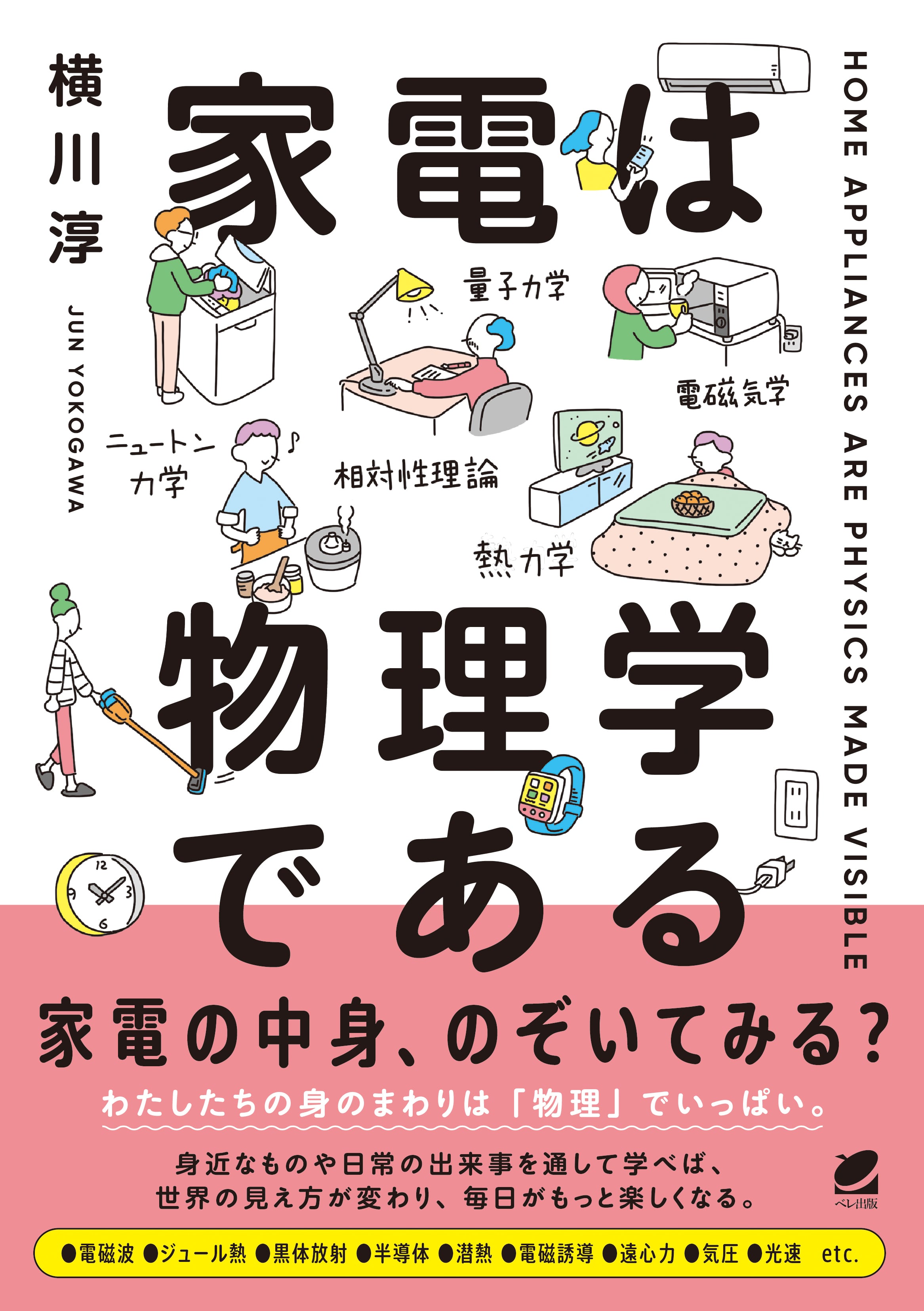 本書では、身近な家電を動かす物理の仕組みをわかりやすく紹介します。登場するのは、ニュートン力学、電磁気学、熱力学から、量子力学、相対性理論にまで広がり、「こんなところに物理が!」と、きっと驚いていただけるはずです。