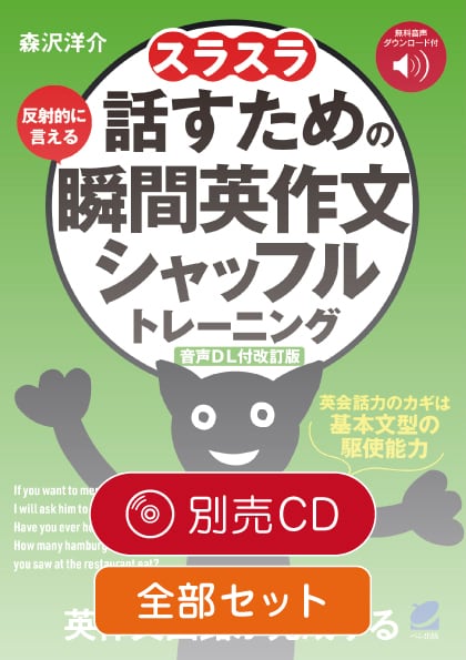 『[音声DL付改訂版]スラスラ話すための瞬間英作文シャッフルトレーニング』を購入された方で、音声ダウンロードサービスの利用環境をお持ちでない方のための別売CDです。