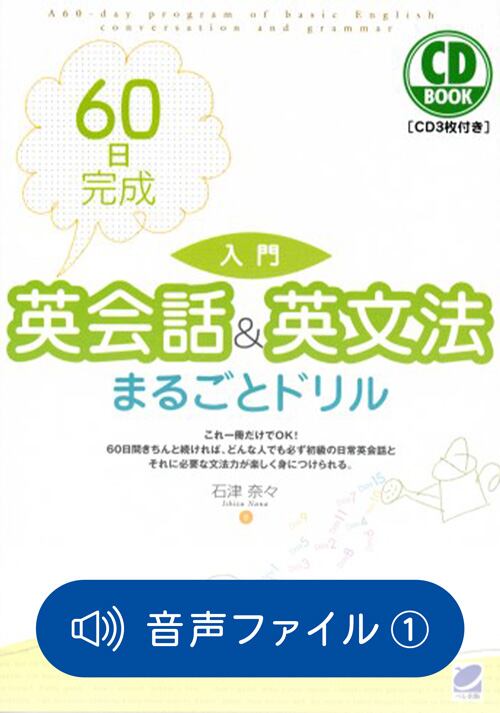 書籍『60日完成入門英会話&英文法まるごとドリル』付属CD(disc1)の音声のみの販売です。